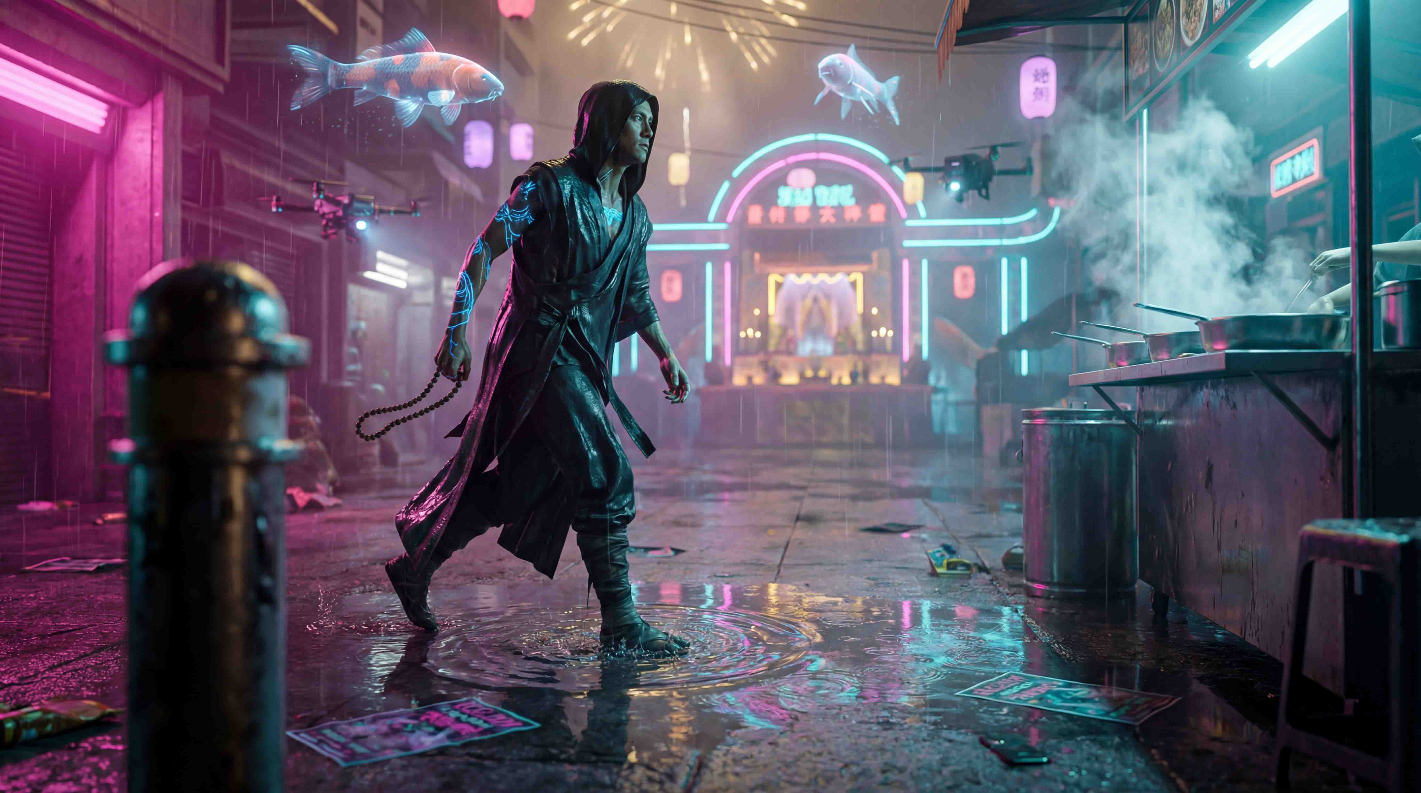 Окружение, реквизит, массовка и свет на дальнем плане сохраняют цельность — даже второстепенные элементы работают на сюжет.